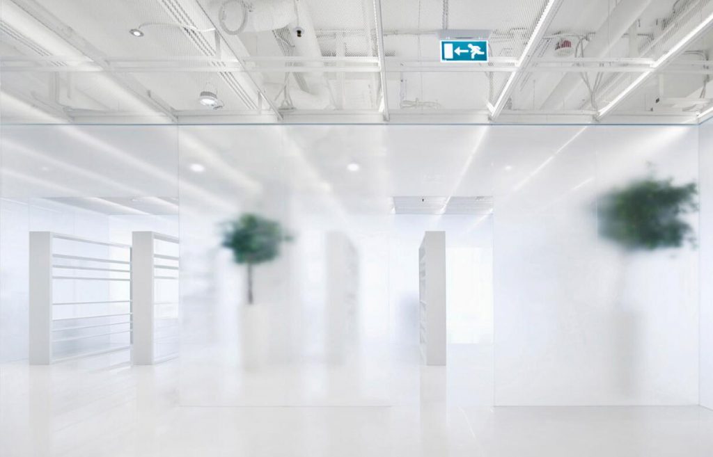 纯洁轻盈明亮诗意的空间,使用的金属拉伸网既纯净又轻盈,无论是物质还是诗意。立面与室内之间创造了一个100米狭长的展厅,建筑立面与室内之间100米长的廊道.