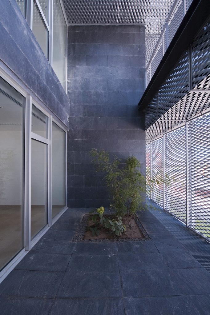 金属拉伸网百叶窗特定点在处折叠。它产生间隙空间,如阴影,植被的庭院,照亮进入大堂的工作区和楼梯。 金属拉伸网 金属拉伸网立面 建筑物内部围绕着一个大型圆形大厅,其中包括三个层面,主要由倒置的圆锥形木制天窗组成,该天窗采用过滤和暖光。这个空间通向工作区域,设计为带有玻璃外围的开放空间,由室内庭院点亮和组织。